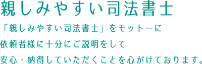 「親しみやすい司法書士」をモットーにお客様に十分にご説明をして安心・納得していただくことを心がけております。