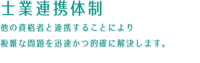他の資格者と連携することにより複雑な問題を迅速かつ的確に解決します。