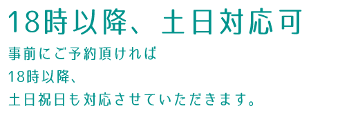 事前にご予約頂ければ 18時以降、土日祝日も対応させて頂きます。